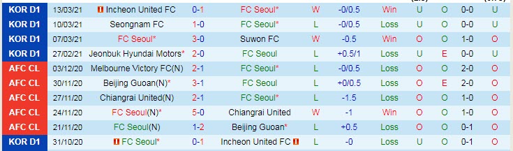 + Thống kê 10 trận gần nhất của FC Seoul