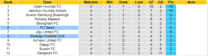 Nên nhớ, Gwangju là đội bóng không cùng đẳng cấp lẫn phong độ so với FC Seoul. Sau 4 lượt trận đã đá ở mùa giải năm nay, Gwangju mới thắng duy nhất 1 trận, còn lại là 3 thất bại. Tính cả giai đoạn cuối mùa trước, họ chỉ thắng duy nhất 1 trận và thua tới 8 trận ở 9 trận vừa rồi tại giải VĐQG Hàn Quốc.
