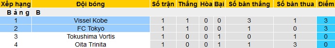 Bảng xếp hạng bảng B cúp liên đoàn Nhật Bản