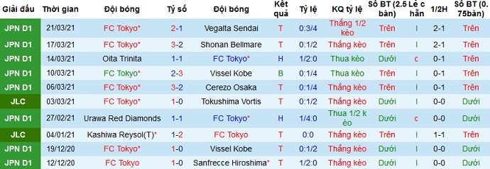 + Thống kê 10 trận gần nhất của FC Tokyo