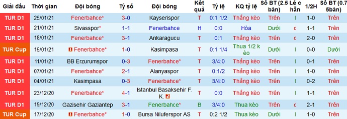 + Thống kê 10 trận gần nhất của Fenerbahçe