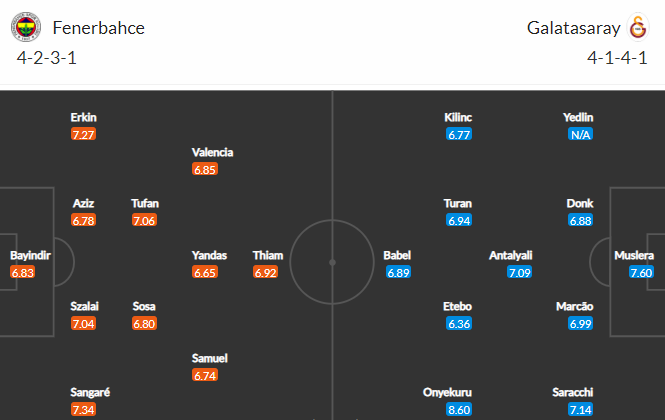 Đội hình dự kiến Fenerbahce vs Galatasaray