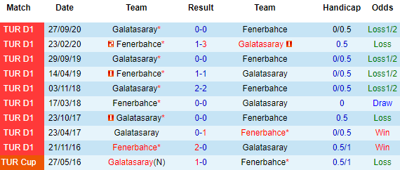 + Lịch sử đối đầu Fenerbahce vs Galatasaray