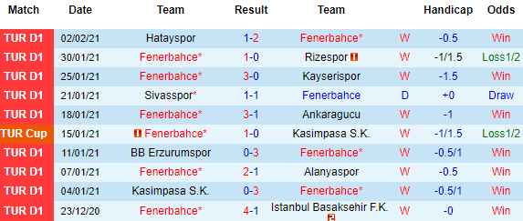 + Thống kê 10 trận gần nhất của Fenerbahce