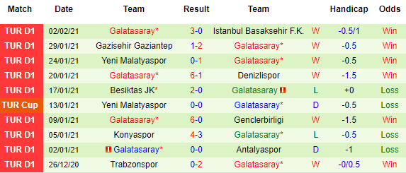 + Thống kê 10 trận gần nhất của Galatasaray