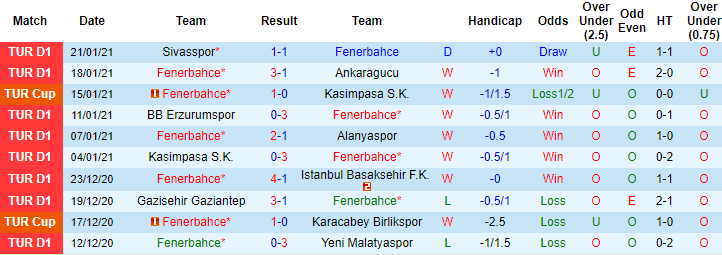 + Thống kê 10 trận gần nhất của Fenerbahce