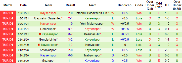 + Thống kê 10 trận gần nhất của Kayserispor