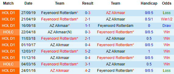 + Lịch sử đối đầu Feyenoord vs AZ Alkmaar