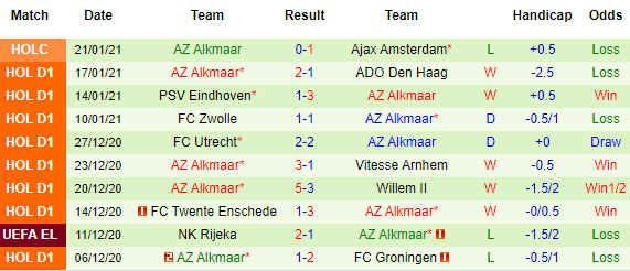 + Thống kê 10 trận gần nhất của AZ Alkmaar