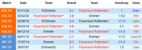 + Lịch sử đối đầu Feyenoord vs Emmen