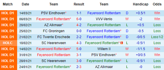 + Thống kê 10 trận gần nhất của Feyenoord