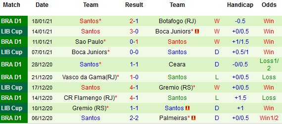 + Thống kê 10 trận gần nhất của Santos