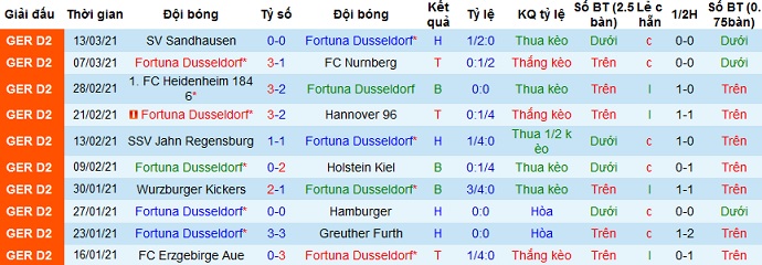 + Thống kê 10 trận gần nhất của Fortuna Düsseldorf