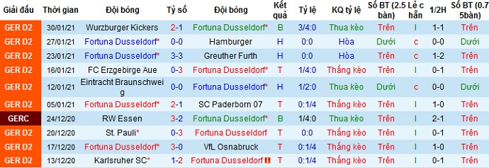 + Thống kê 10 trận gần nhất của Fortuna Düsseldorf