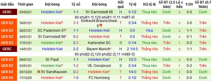 Thế nhưng Holstein Kiel vẫn đang bất bại trong cả 4 lần gặp nhau gần nhất giữa hai đội với 2 trận thắng và 2 trận hòa. Ngoài ra Holstein Kiel còn có thành tích rất ấn tượng trong các lần du đấu nên chọn cửa dưới ở trận đấy này là hoàn toàn có cơ sở và hợp lý.