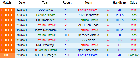 Màn trình diễn của Fortuna Sittard thời gian qua cũng không tệ. Ở 5 vòng gần nhất thì họ có 3 chiến thắng. Có thể thấy Fortuna Sittard rất biết cách kiếm điểm trước những đối thủ ngang tầm hoặc yếu hơn họ, còn trước CLB mạnh hơn thì dường như Fortuna Sittard chấp nhận lép vế để dồn sức cho những trận cầu quan trọng.