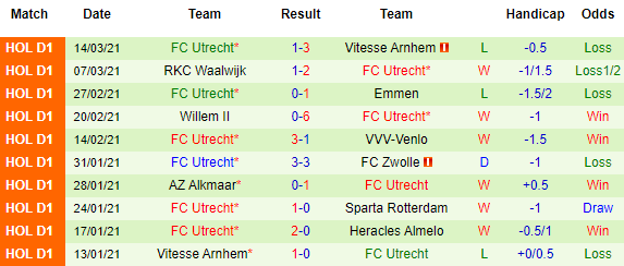 + Thống kê 10 trận gần nhất của Utrecht