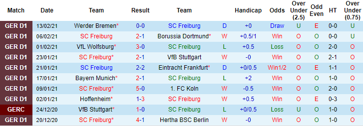 + Thống kê 10 trận gần nhất của Freiburg