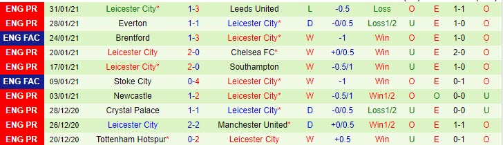 + Thống kê 10 trận gần nhất của Leicester