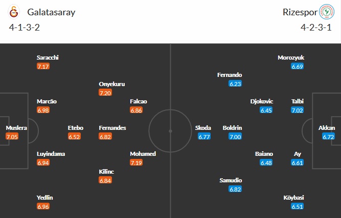 Đội hình dự kiến Galatasaray vs Rizespor
