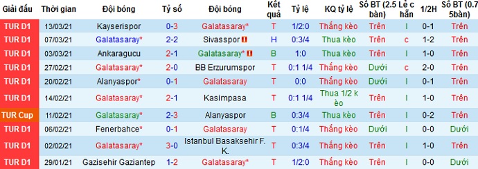 + Thống kê 10 trận gần nhất của Galatasaray