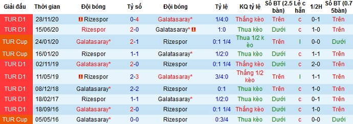+ Lịch sử đối đầu Galatasaray vs Rizespor