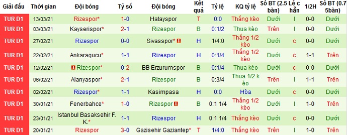 + Thống kê 10 trận gần nhất của Rizespor