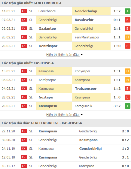 Phong độ và thống kê đối đầu gần đây Genclerbirligi vs Kasımpasa:
