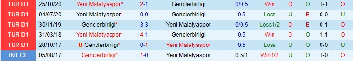 Phong độ và thống kê đối đầu Genclerbirligi - Yeni Malatyaspor gần đây: