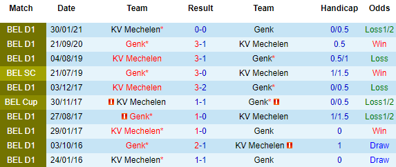 + Lịch sử đối đầu Genk vs Mechelen