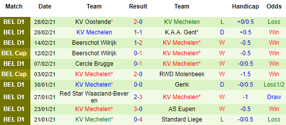 + Thống kê 10 trận gần nhất của Mechelen