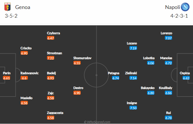 Phong độ và thống kê đối đầu Genoa vs Napoli