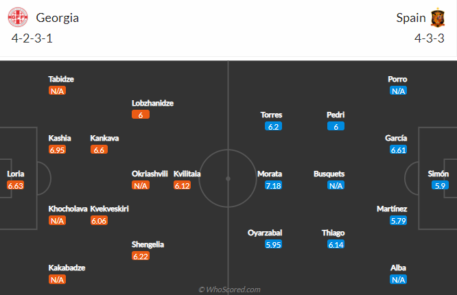 Đội hình dự kiến Georgia vs Tây Ban Nha