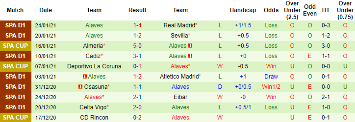 + Thống kê 10 trận gần nhất của Alaves