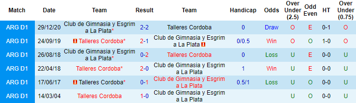 Có lợi thế sân nhà ở trận đấu sắp tới nhưng Gimnasia lại không được tin tưởng vào khả năng giành chiến thắng. Bởi đối thủ của họ là khắc tinh Talleres Cordoba. Trong vòng 3 trận đối đầu Gimnasia gần đây, Talleres Cordoba đạt thành tích bất bại với 2 chiến thắng và 1 trận hòa. 2 lần trước đó làm khách của Gimnasia, Talleres Cordoba cũng giành 4 trên 6 điểm tối đa tại giải VĐQG Argentina.