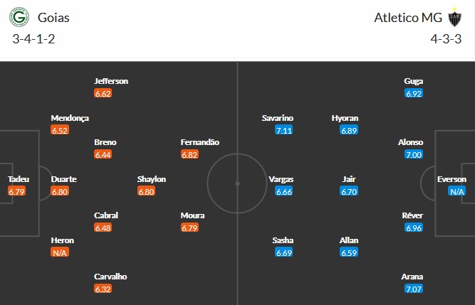 Đội hình dự kiến Goiás vs Atlético Mineiro
