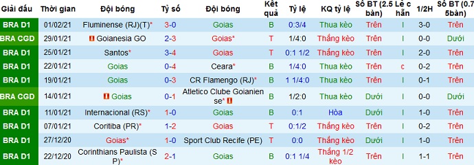 Trong 5 trận gần nhất Goiás cũng có được 2 trận thắng và để thua 3 trận. Thế nhưng trên sân nhà sau 1 trận thắng và 1 trận hòa, Goiás đang để thua trong cả 3 trận gần nhất, tính cả trận thua tại Goiano 1.