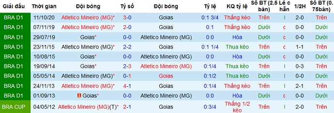 + Lịch sử đối đầu Goiás vs Atlético Mineiro