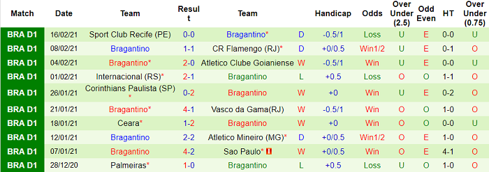 Dù đang đứng ở nửa cuối bảng xếp hạng nhưng Goias sở hữu tỷ lệ thắng kèo tương đối ấn tượng. Tỷ lệ thắng kèo của Goias tại giải VĐQG Brazil mùa này lên tới 58.33%, chỉ sau Internacional (61.11%). Trong khi đó, tỷ lệ thắng kèo trên sân khách của Bragantino tại Serie A Brazil mùa này chỉ ở mức 38.89%.