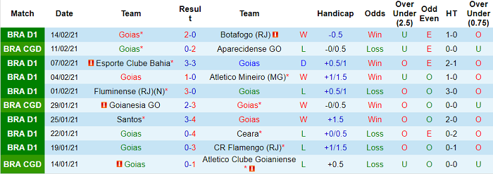 Goias thời gian qua đã thu về những kết quả tích cực hơn. Họ bất bại cả 3 vòng gần đây và giành 7/10 điểm tối đa. Thành tích này ấn tượng hơn đáng kể so với việc chỉ giành được 3 điểm từ 5 vòng trước đó: thắng 1, thua 4.