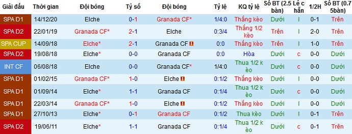 + Lịch sử đối đầu Granada vs Elche