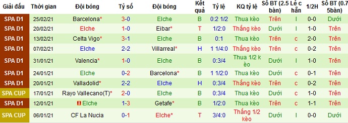 + Thống kê 10 trận gần nhất của Elche