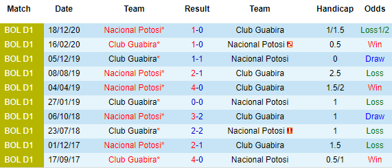 + Lịch sử đối đầu Guabira vs Nacional Potosi