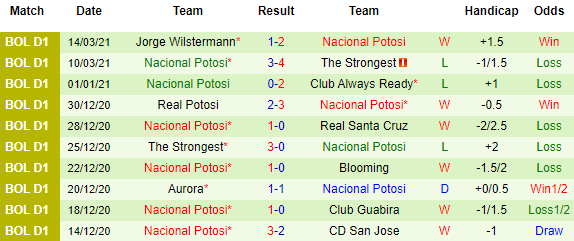 + Thống kê 10 trận gần nhất của Nacional Potosi