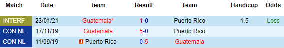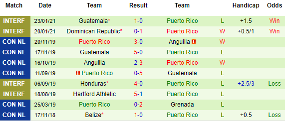 + Lịch sử đối đầu Guatemala vs Puerto Rico