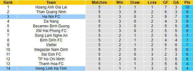 Phong độ và thống kê đối đầu Hà Nội vs Hồng Lĩnh Hà Tĩnh