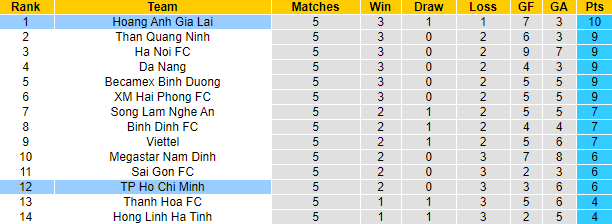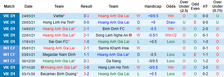 + Thống kê 10 trận gần nhất của HAGL