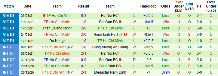 + Thống kê 10 trận gần nhất của TP.HCM