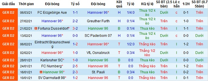 Phong độ gần đây của Hannover cũng không thật tốt khi đội bóng chỉ có được 1 trận thắng, 3 trận hòa và để thua 1 trận trong 5 trận gần nhất. Ngay trên sân nhà thành tích của Hannover cũng chỉ tốt hơn đôi chút với 2 trận thắng, 2 trận hòa và 1 trận thua sau 5 trận gần nhất tại đây.