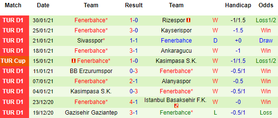 + Thống kê 10 trận gần nhất của Fenerbahce